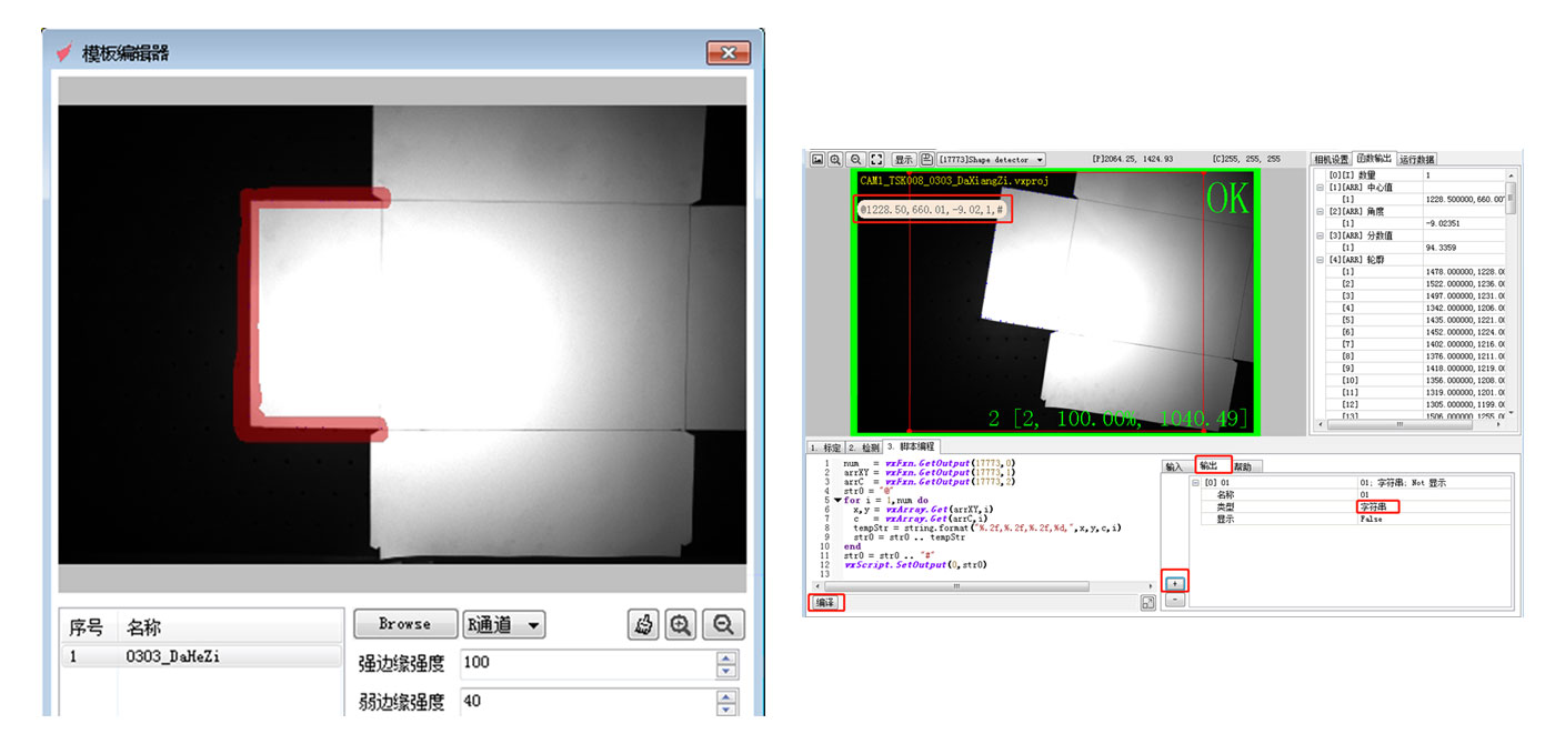 典型配置中采用單相機(jī)識(shí)別,鏡頭少、光源少、機(jī)架安裝少、成本低、調(diào)試工作量極簡(jiǎn)。可以任意選擇要識(shí)別的局部輪廓特征,不拘泥于完整面紙圖像。
